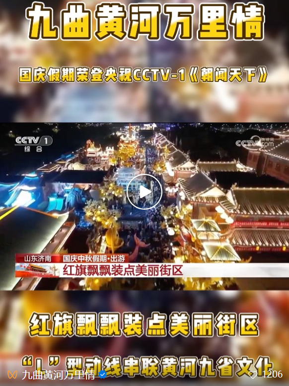 10月5日,CCTV-1、CCTV-13《朝闻天下》以“山东济南:红旗飘飘装点美丽街区”为题,报道了济南市济阳区“九曲黄河万里情”文旅街区的国庆盛况。