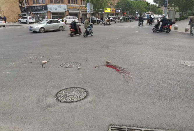 今天傍晚,大众网·海报新闻记者赶到事发路口看到,地上还有一滩未干的血迹,涉事渣土车轮拖行的血迹约有5米左右。目击者附近居民隋女士称,救护车抵达现场不久后就离开了,并未将人载离。隋女士说,该路口经常发生刮蹭事故,在2018年下半年安装了交通信号灯,但她看到该处的信号灯经常是频闪,而非按时闪动红绿灯,走到这里过马路时不知道该走还是停。