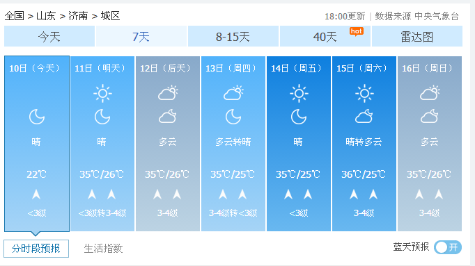 鲁网6月10 日讯(记者 徐英淦)2019中考即将开考。端午小长假过后,凉爽天气并没有延续到本周,未来四天,济南将开启高温模式,最高气温均在35℃以上,提醒考生注意防暑降温。