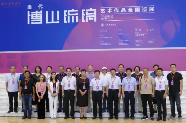 鲁网8月19日讯 8月18日,山东艺术学院主办的国家艺术基金2019年度传播交流推广资助项目“当代博山琉璃艺术作品全国巡展”最后一站济南站开幕式暨学术研讨会在山东博物馆举行。山东艺术学院副院长杨西国,山东省教育厅体卫艺处处长孙乐为,山东省文化和旅游厅艺术处处长张东林,中共淄博市博山区委常委、宣传部部长高健,齐鲁工业大学艺术学院院长刘木森,山东工艺美术学院现代手工艺学院院长赵进,山东女子学院艺术学院院长张利,山东工艺美术学院教授李霁、李岱玫,山东一亩样田文化传播有限公司董事长陈苹,淄博市博山区文化研究院院长、博山陶瓷琉璃行业服务中心主任刘莲静,山东爱美琉璃有限公司董事长孙云浩,博山琉璃行业的中国琉璃艺术大师、山东工艺美术大师等作者代表参加活动。开幕式及学术研讨会由山东艺术学院设计学院副院长远宏教授主持。