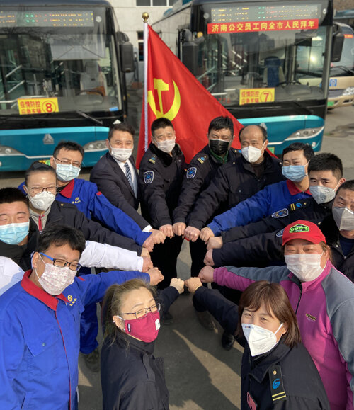 济南公交的“战士们”忙碌在抗疫一线(均为受访者供图)
