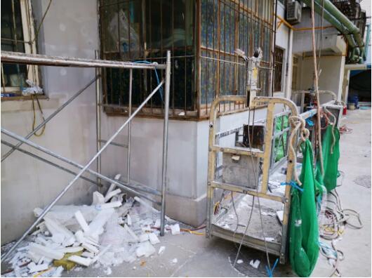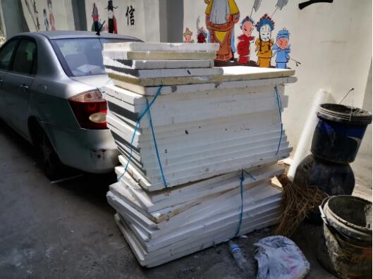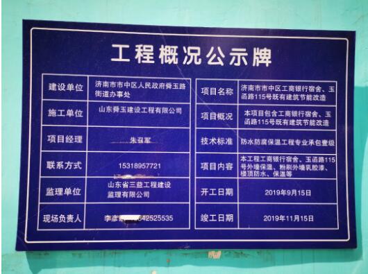 6月4日,记者来到济南市市中区玉函路115号小区时,看到这个小区内依然在进行外墙保温施工。然而在一进小区的地方,记者看到了一块工程概况公示牌,根据公示牌,项目内容包括外墙保温、粉刷外墙乳胶漆、楼顶防水、保温等工程,开工日期为2019年9月15日,竣工日期为2019年11月15日。当地居民表示,这个项目已经持续大半年,涂料随意堆放在小区过道,小区停车棚也被一直占用,很不方便。