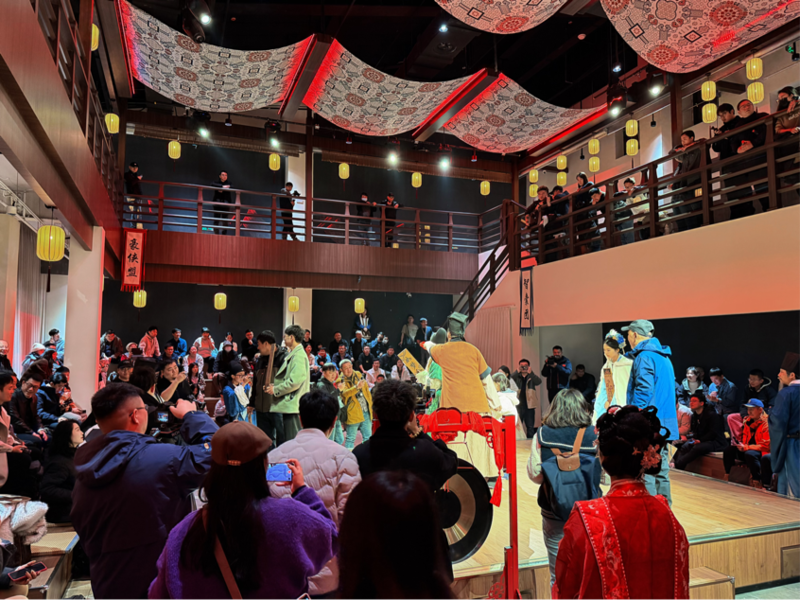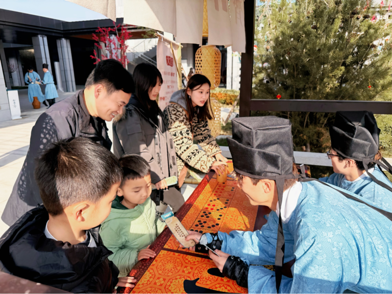 为让游客解锁宋时生活密码,开园当日起至12月31日每天都有特色活动。11月29日至12月5日,“宋时生活游记”实景游戏上线,“齐州大富翁”复刻宋代市井趣味,投壶、木射等传统游戏供亲子同乐,集福卡即可兑换宋词书签等文创。12+NPC全园互动,糖水西施、画扇李等角色让游客快速融入情境。更值得一提的是,11月29日至30日的“易安花事·江湖游园会”,花神巡游、诗词对答与百戏杂耍更添宋市繁华。