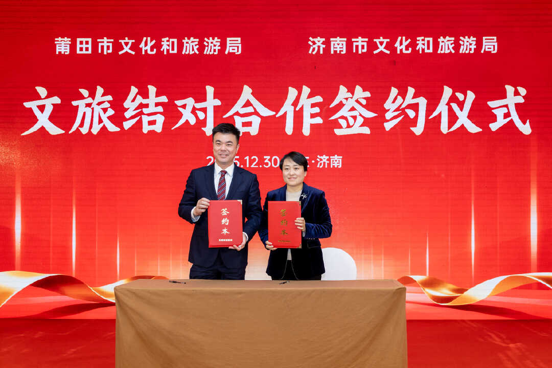 活动现场,多项文旅合作协议成功签署,推动两地文旅协作向纵深迈进。莆田市文化和旅游局与济南市文化和旅游局签订文旅战略合作框架协议,双方将在文化交流、旅游市场拓展、产业协作等领域开展全方位合作,共享旅游服务标准,互推优质旅游资源。