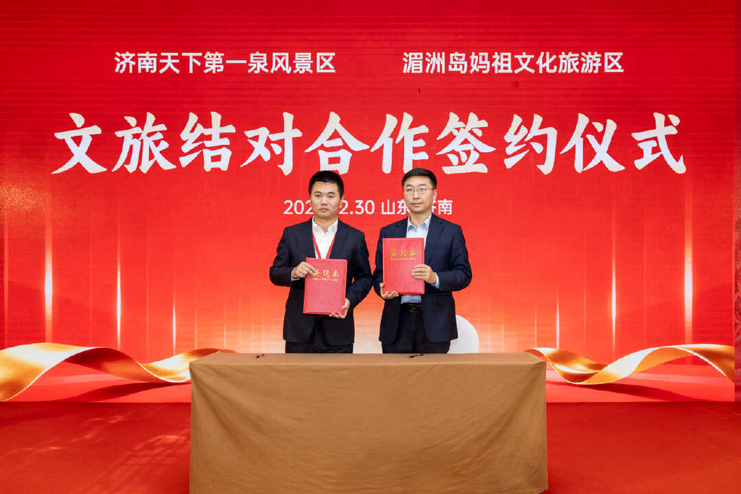 湄洲岛妈祖文化旅游区与济南天下第一泉景区达成文旅结对合作,双方将加强重大文化活动联动,深化文旅融合协作,联合打造“泉韵齐鲁·妈祖祈福”跨区域主题线路,合作开发具有双重文化辨识度的特色文创产品、旅游纪念品,推动妈祖文化与泉文化深度交融。