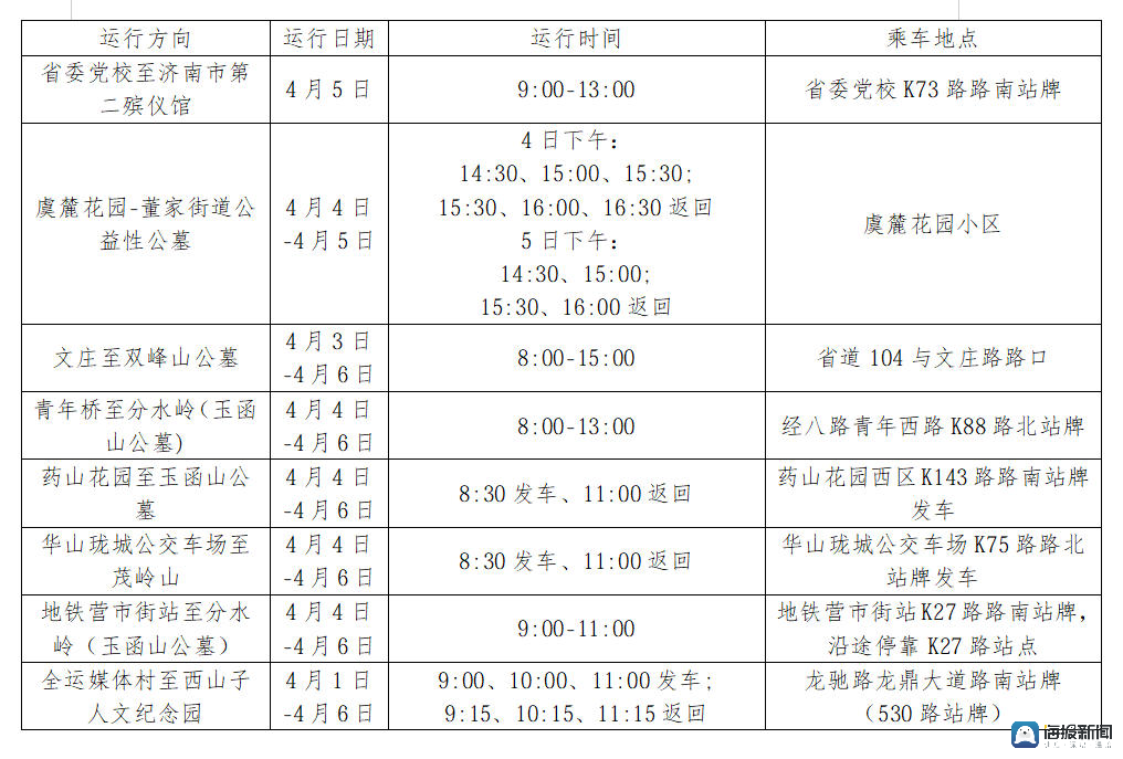 济南公交推出8条清明祭扫专线