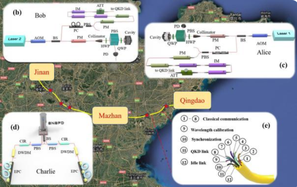 “济青干线”量子通信实验示意图。(中国科学技术大学供图)
