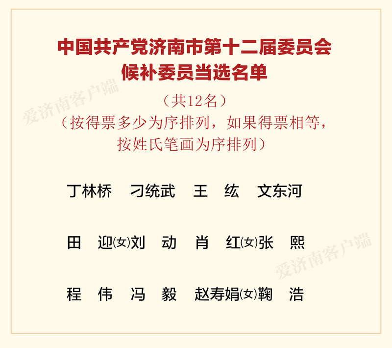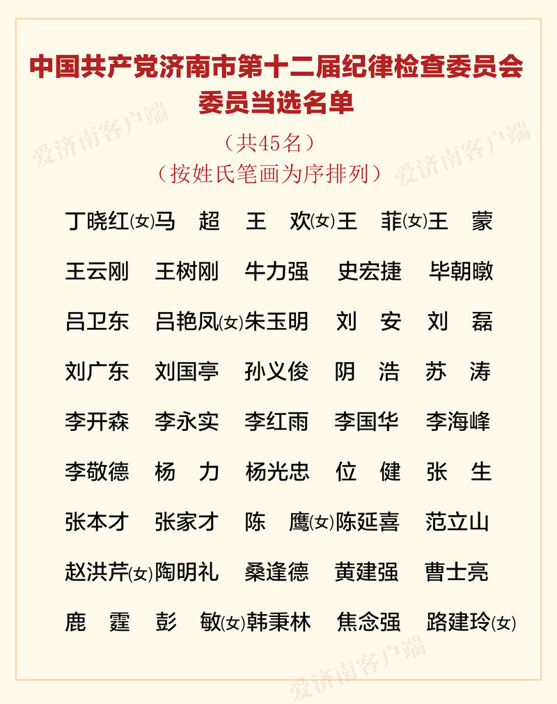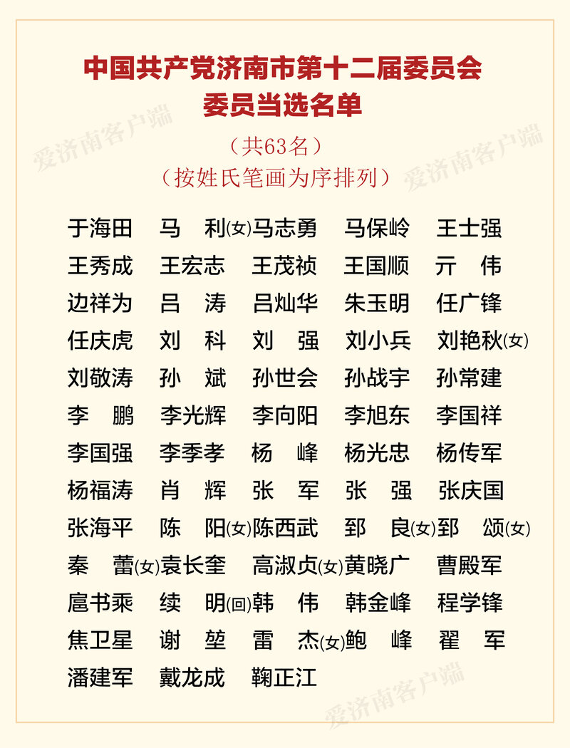 中共济南市委新一届委员、候补委员,市纪委委员名单