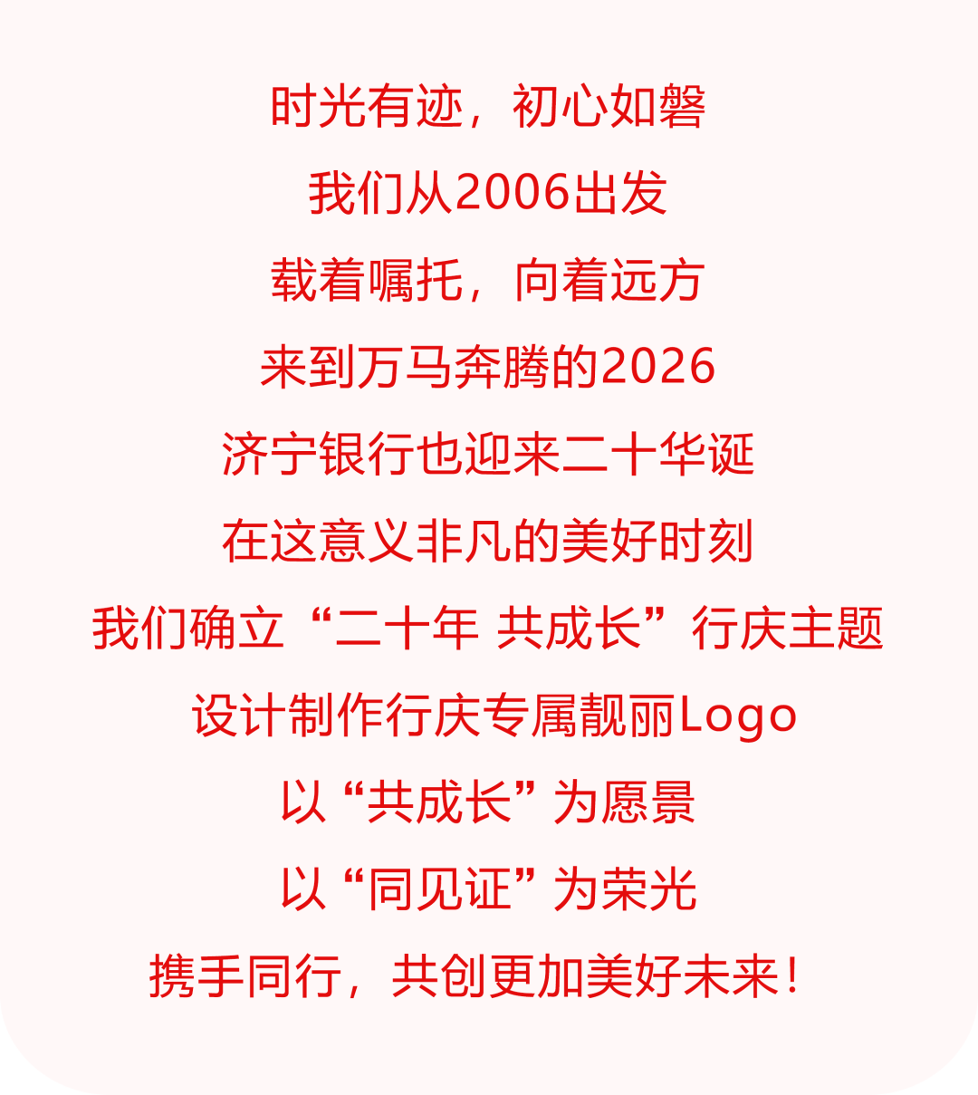 二十年 共成长 | 济宁银行20周年庆主题暨专属Logo正式发布