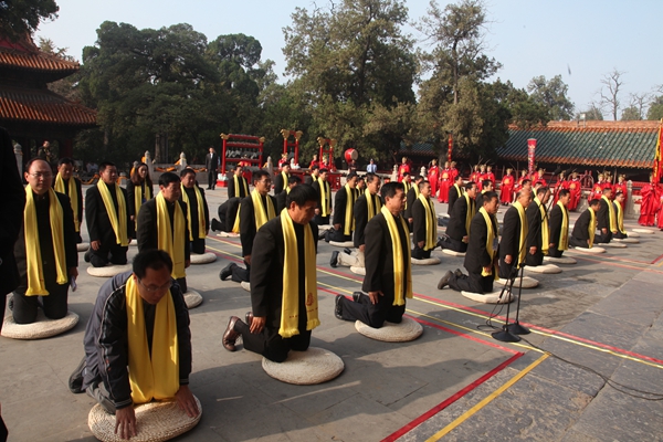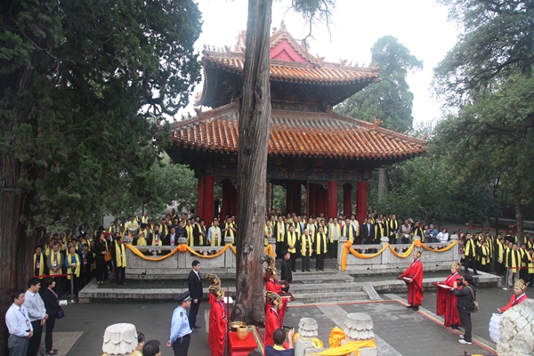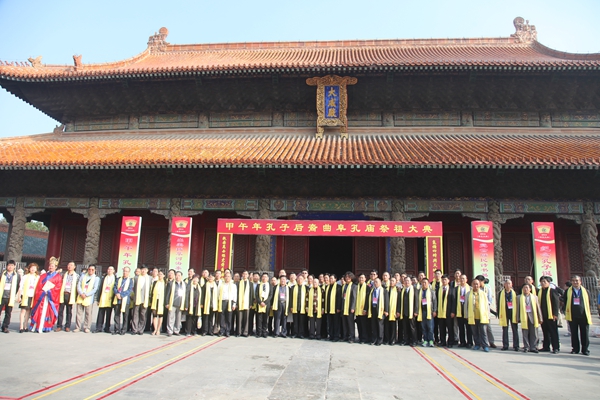 2014年9月20日(农历8月27日,孔子诞辰日), 甲午年孔子后裔纪念先祖诞辰2565年家祭大典在孔庙大成殿前月台举行。