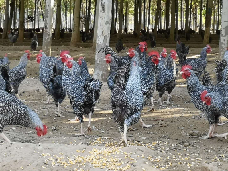 这里的鸡讲究血统。杂交芦花鸡2月龄公鸡体重约1.8公斤,母鸡1.5公斤。纯种汶上芦花鸡6月龄公鸡体重约1.75公斤,母鸡1.35公斤。肉、蛋品质卓越,集观赏、娱乐、食用、滋补、保健于一体。