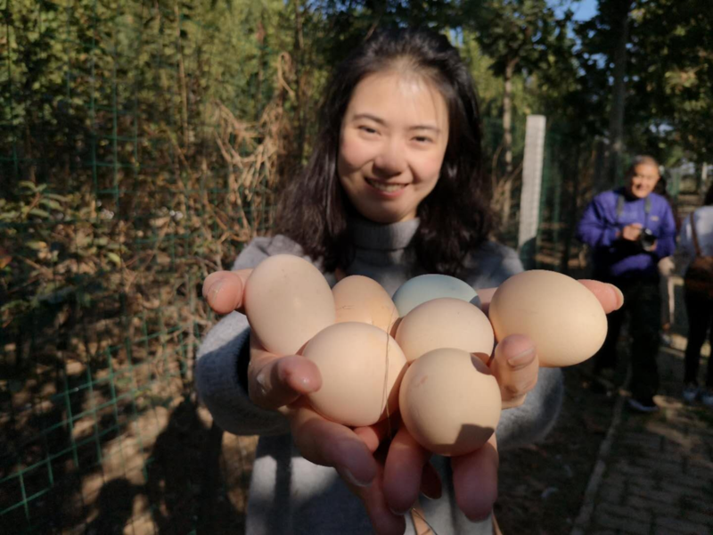 这里的鸡全是放养的,个个都是运动健将。正是因为勤于运动,一枚鸡蛋能买到5到8元,一只汶上芦花鸡的价格是普通鸡的3倍还多。