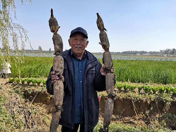 在汶上邱镇朱庄村,采访团一行感受到了千亩荷塘莲藕大丰收给当地农民带来的喜悦。虽然夏季亭亭玉立的荷叶如今已经干枯败落,但这里并不萧条,水下淤泥里埋藏着金秋丰硕的果实——白莲藕。目前,汶上白莲藕已形成基地种植规模,主要分布在朱庄村和沈堂村。“我们共种植了500多亩,亩产4500斤左右,每年还带动当地200人就业。”一位种植户告诉采访采风团。