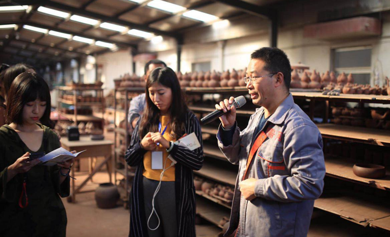 18日下午,采访采风团乘车来到在泗水县山东儒陶润华土陶科技有限公司,揭开了制陶的神秘面纱。在充满文化韵味的泗水之滨,一直沿袭千年的制陶技艺在这里得以传承与发展,并且随着科技发展,注入了新的文化活力。