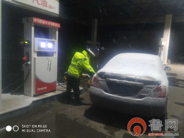 鲁网2月16日讯 2月15日凌晨1时40分许,天空飘着鹅毛大雪。有一位男士急匆匆地跑到338省道嘉郓交界处防疫检查点,对正在执勤的嘉祥交警大队三中队辅警刘士方、王来雷说:“我的轿车没油抛锚了,给保险公司打电话求援,保险公司说特殊时期不能送油,请求交警们帮助。”