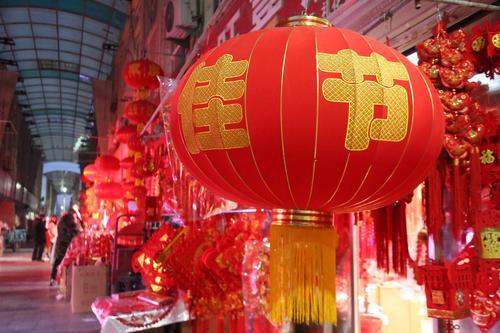 位于建设路的香江大市场是小商品集散地,从事喜庆行业的店铺从三四个月前就开始备货了,大大小小的中国结、长短不一的红辣椒、各式各样的红灯笼、福字、春联……琳琅满目。