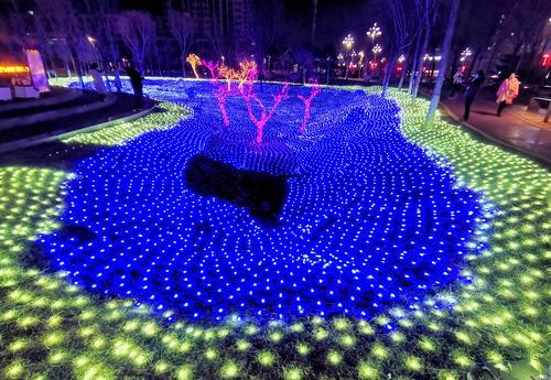 开发区知秋园的灯饰色彩斑斓宛若星河