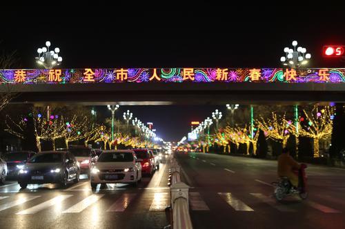 除了东昌路行道树上组装的彩灯,火车站广场边一人多高的“春”字、主要路口造型各异的灯饰、过街天桥上的“祝福语”、徒骇河桥上的“走马灯”……夜幕降临,放眼望去,处处流光溢彩,水城已然成为一个如梦似幻的“光的世界”。