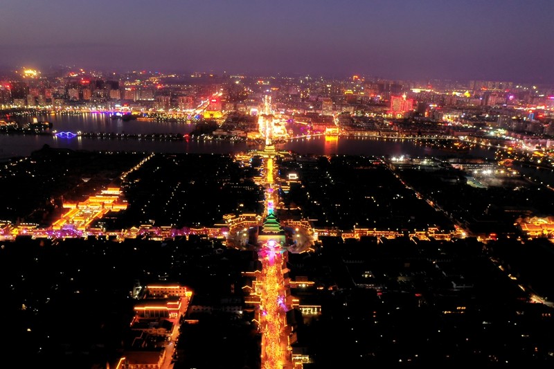 俯瞰夜幕下的聊城古城区,别有韵味。