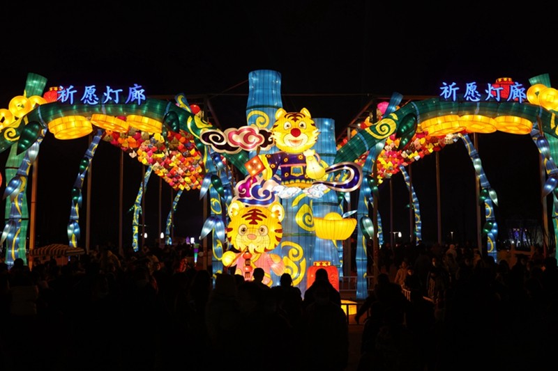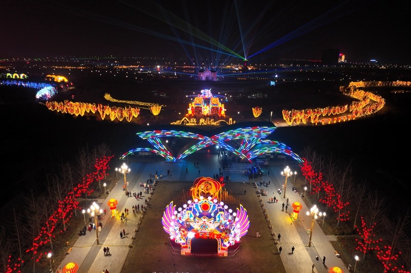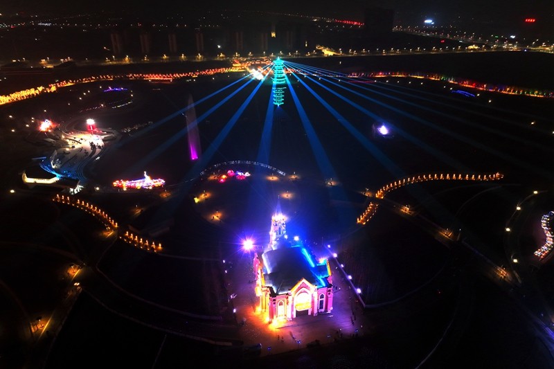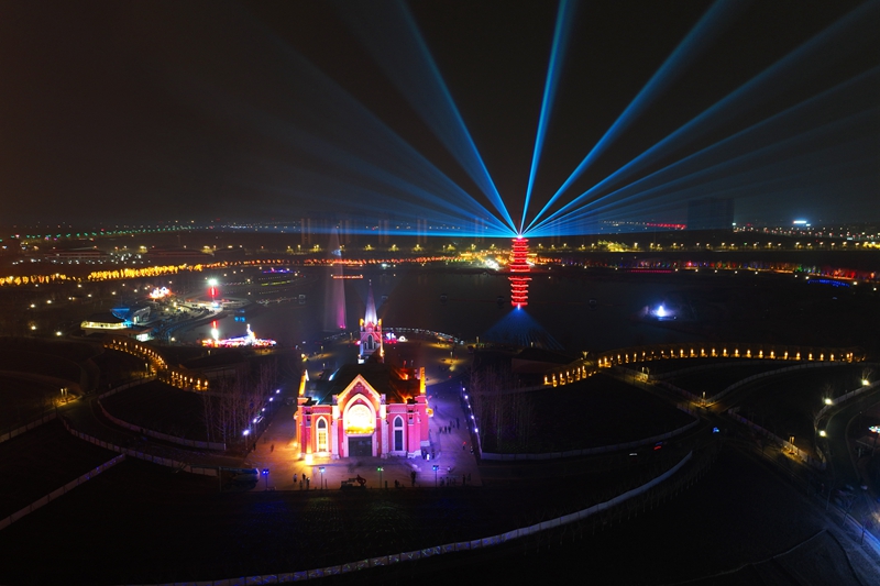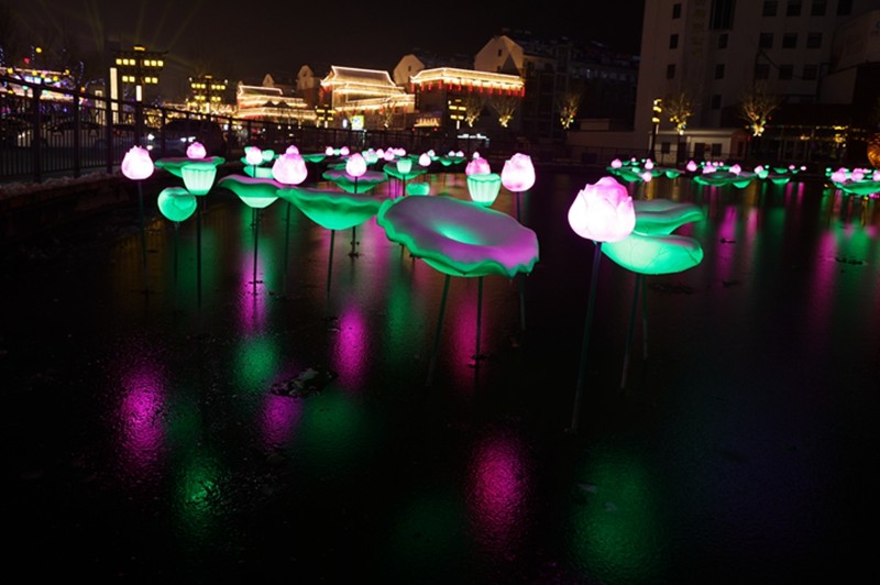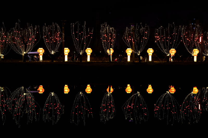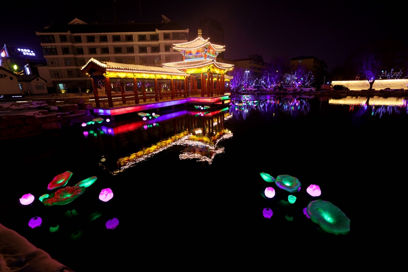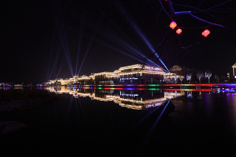 琴湖畔,灯光营造出浓浓的节日气氛。