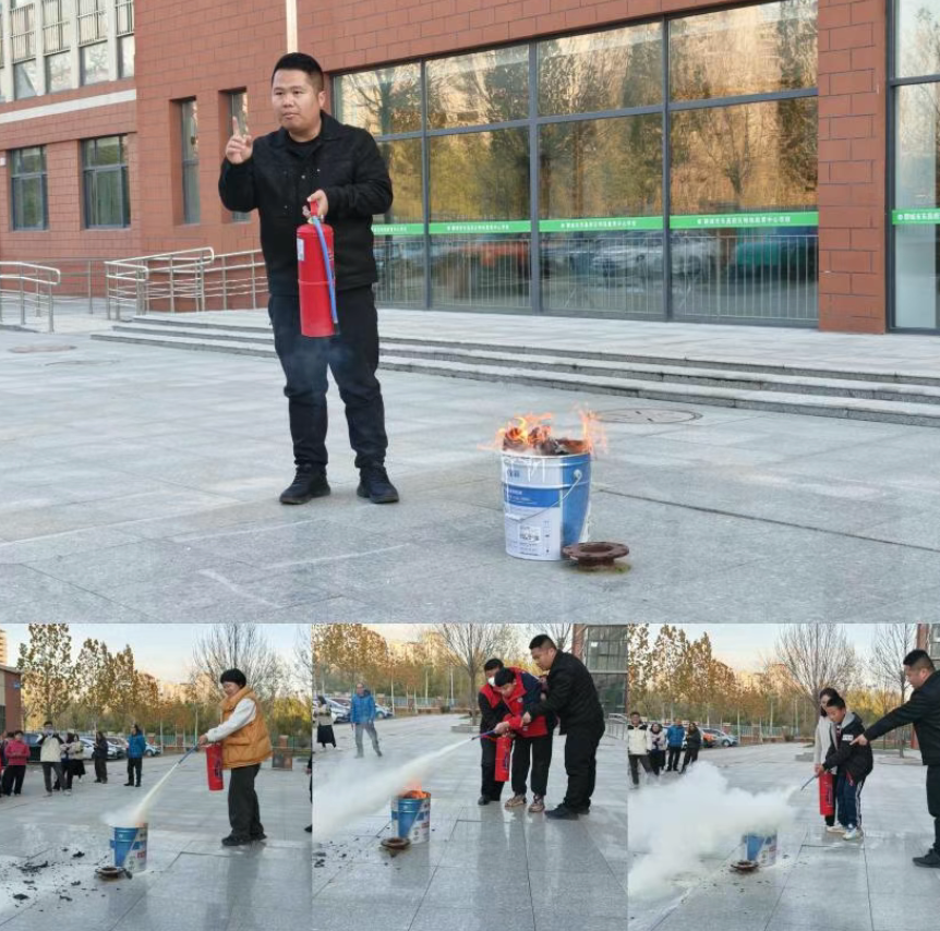 疏散演练后,孔德祯老师讲解灭火器使用方法,以“提、拔、握、压”口诀拆解步骤,强调对准火焰根部等要点。随后指导教师、学生实操练习,及时纠正操作问题,确保大家掌握灭火技能。