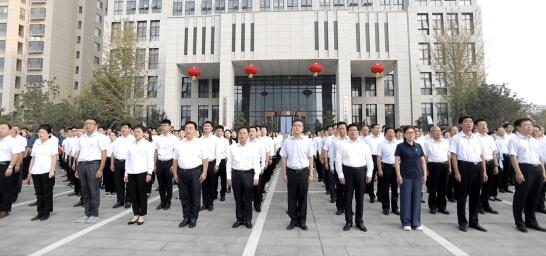 9月30日上午,临沂城发集团联合临沂市财政局举行了一场振奋人心、激励士气的升旗仪式。来自临沂市财政局、临沂城发集团共计400余名干部职工参加升旗仪式。