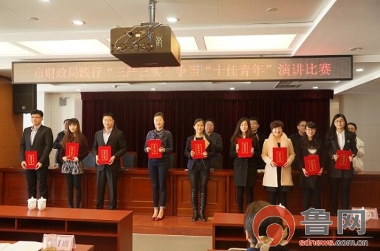 鲁网临沂3月17日讯 2015年12月4日上午,由市财政局主办的践行“三严三实”、争当“十佳青年”演讲比赛在2309会议室成功举办。比赛设演讲席、评委席和监督席,评委席由市纪委、市委组织部和市财政局7位领导组成,监督席由局机关纪委领导组成。经过局各支部的预赛选拔,共有18名选手参加了本次比赛。公司党支部选派左梦桐参加了比赛,以《找准角色定位 做三严三实的忠实践行者》取得二等奖的好成绩。