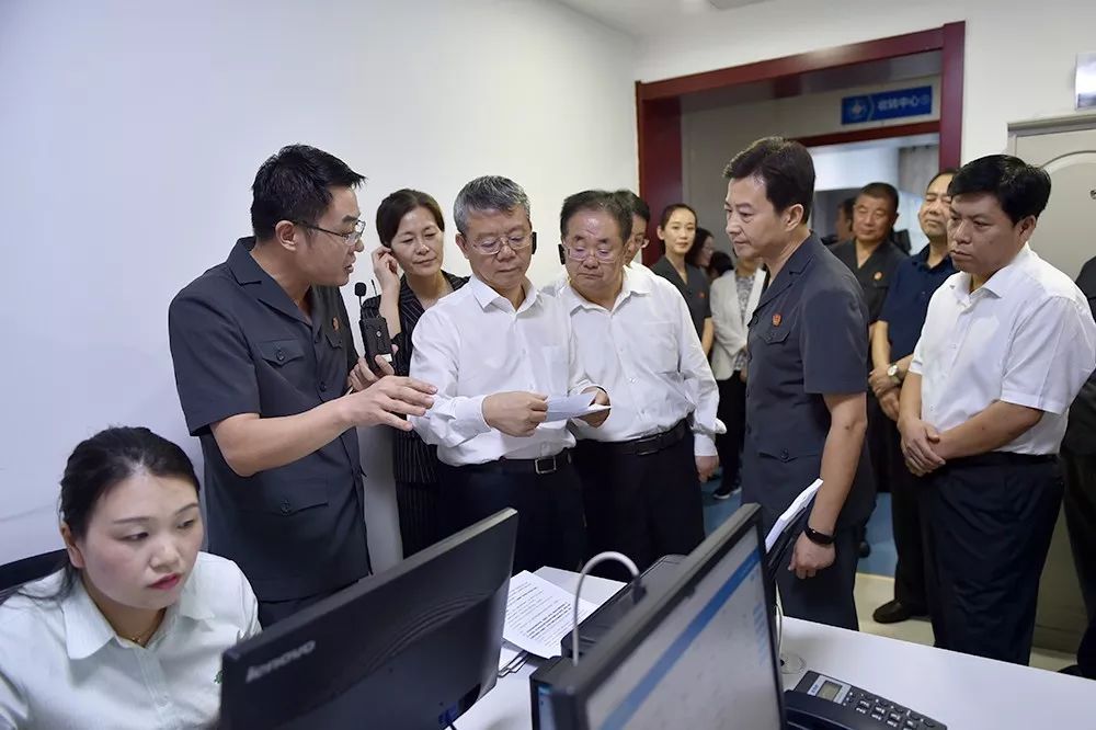 在送达指挥中心,工作人员演示操作了兰山法院送达指挥平台,郑庭长一行详细询问了该院民商事案件送达成功率,并认真听取关于解决送达难题的意见建议。