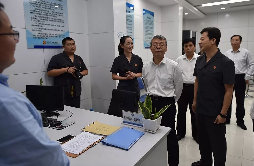 省法院党组成员、副院长段大伟,立案庭庭长阮久红,市中院党组书记、院长于晓东,党组成员、专委张永利,诉讼服务中心主任王健青,立案庭庭长殷方昭,办公室主任裴振华,区委书记赵晓晖及兰山法院党组书记、院长王胜等陪同视察。