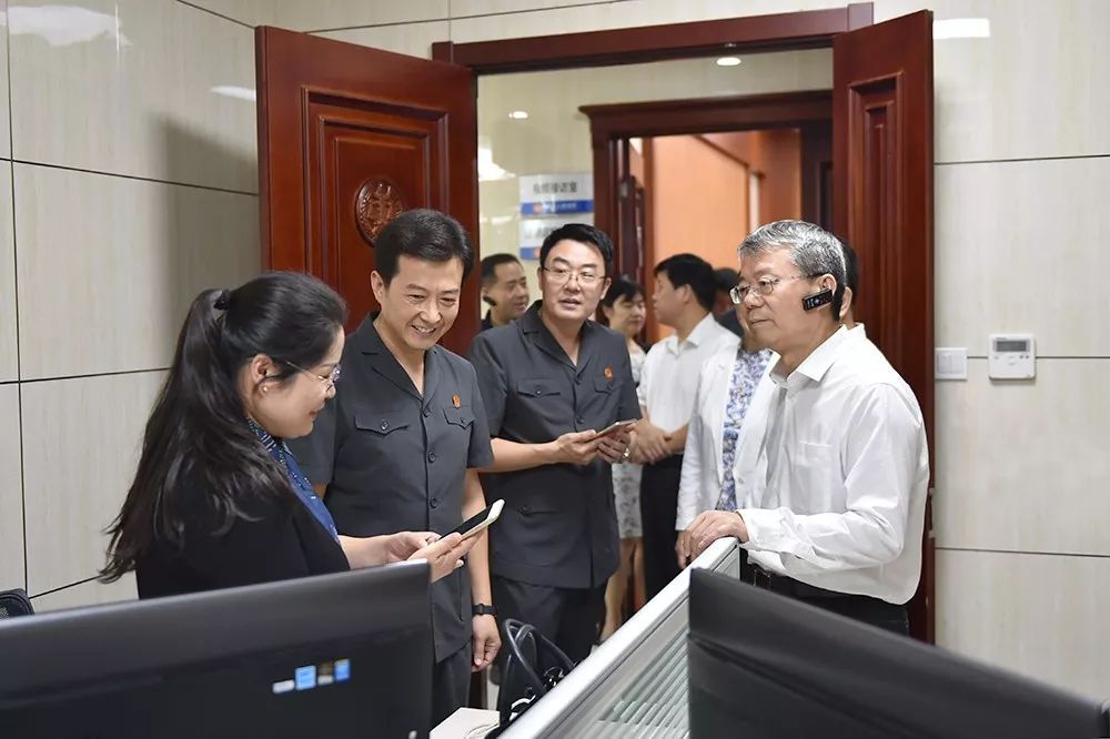 郑庭长一行来到诉调对接中心,工作人员介绍了人脸识别系统、材料收转中心等便民服务举措。在人民调解室,郑庭长与人民调解员一一握手致意,听取关于诉调对接系统的介绍。郑庭长边听边问,并不时提出指导意见。