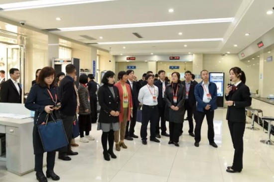 在诉调对接中心,工作人员介绍了人脸识别系统、材料收转中心等便民服务举措,受到了人大代表们的一致点赞。