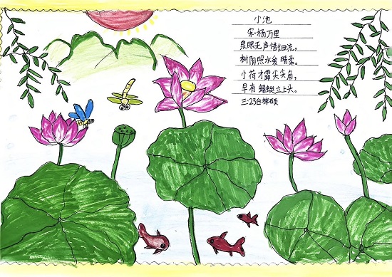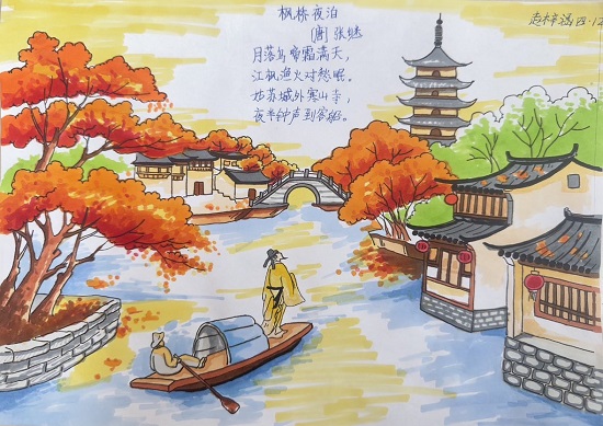 同学们以画为媒,让千年诗词焕发出全新的童趣光彩。三四年级的孩子们化身小小艺术家,从浩瀚的经典诗词中选取心仪篇目,用水彩的灵动、彩铅的细腻、国画的雅致,在画纸上挥洒创意。(通讯员 刘雯宇)
