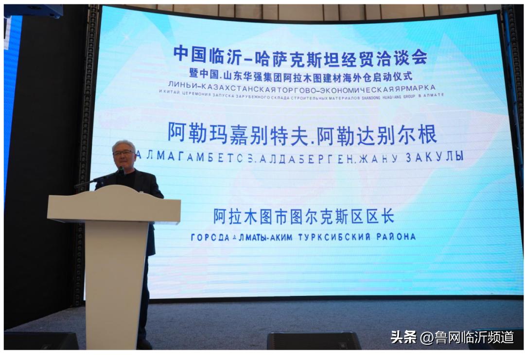 阿拉木图市图尔克斯区区长阿勒玛嘉别特夫.阿勒达别尔根先生致辞表示,临沂市在产业结构、市场供给等方面与阿拉木图市发展需求有很多契合点。两市深化互利合作空间大、前景广阔,希望通过此次山东华强集团阿拉木图建材海外仓启动仪式为契机,加强交流,共同搭建更多优质合作平台,做好资源优势对接,积极创造合作条件,推动阿拉木图市不断拓展经贸、产业、人文等领域合作空间,促进共赢发展。