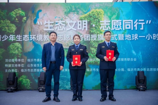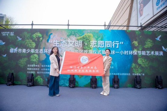 生态文明,志愿同行!临沂市青少年生态环境教育志愿服务团授旗仪式暨“地球一小时”环保节能艺术展演活动成功举行