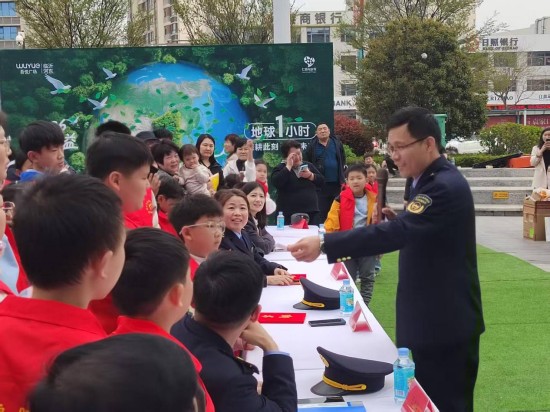鲁网3月31日讯 2026年是“地球一小时”活动20周年,为倡导绿色低碳、节能环保的生活方式,增强公众生态保护意识,3月28日,由临沂市委社会工作部、临沂市关工委、共青团临沂市委、临沂市志愿服务联合会指导,临沂市志愿服务联合会青少年发展服务专委会、临沂市青少年志愿服务团、临沂市生态环境局河东分局及河东吾悦广场联合主办的临沂市青少年生态环境教育志愿服务团授旗仪式暨“关注地球一小时”环保节能艺术展演活动成功举办,以沉浸式、互动式的创新形式,让生态环保理念走进亲子家庭,落地生根。