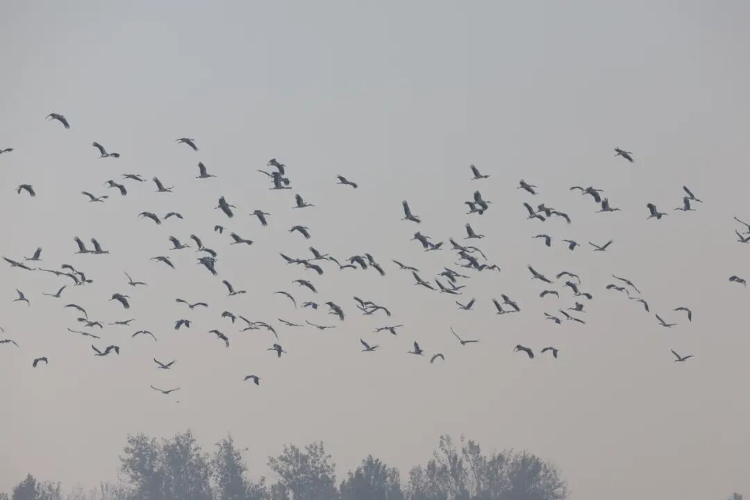 鲁网11月7日讯 近日,290多只东方白鹳飞抵沂河山东省临沂市郯城县段越冬,引来众多鸟类爱好者围观。