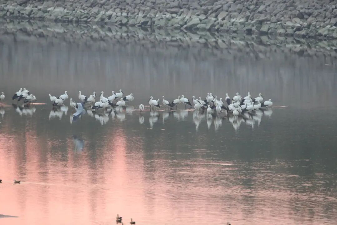 郯城县生态环境优美,水质洁净,鱼虾和水生昆虫丰富,非常适宜东方白鹳捕食及栖息,东方白鹳已经连续5年在候鸟迁徙旅途中把郯城沂河段做为主要的栖息觅食地。(本网记者)
