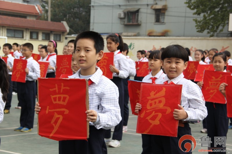 鲁网9月29日讯(记者 王文婷)在庆祝中华人民共和国建国65周年之际,9月29日,济南市花园小学校园变身一座巨大的翰墨舞台,在孩子们“祝福祖国”的欢呼中,由二百多名少先队员用“梦”字组成了一个巨大的“中国”字样,与鲜艳的五星红旗相映成辉,孩子们用手中的笔墨抒发对祖国的热爱,对实现中国梦想的无限憧憬。 |