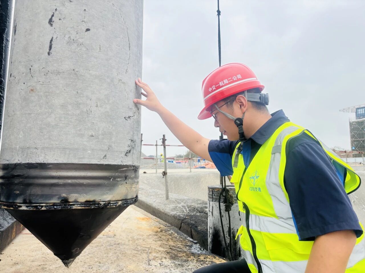 白沙湾国际自然医学度假区(一期)-白沙湾国际疗愈度假酒店项目桩基施工,从过程盯控到收锤验收,现场全员闭环管控、层层把关。“417#桩基达到收锤标准,入岩深度1.75米,满足设计不小于0.5米要求。合格!”质量员将桩基数据写进钻孔记录表,用硬核指标护航项目生产。