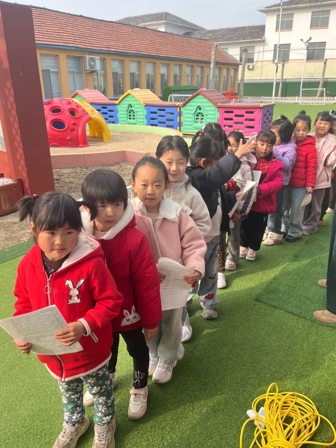 查体现场设置多个检查区域,医护人员分工明确、配合默契。孩子们在老师的有序组织下,安静排队等待检查。本次查体涵盖了体重身高测量、视力检查、口腔检查、心肺听诊、血常规化验等多项内容,全面覆盖儿童生长发育的关键指标。在身高体重测量区,医护人员细心地为孩子们测量数据,认真记录每一项指标,结合儿童生长发育标准,实时评估孩子的体格发育情况;视力检查处,医护人员耐心引导孩子们配合检查,细致排查视力异常问题,叮嘱孩子们爱护眼睛、少看电子产品;口腔检查处,医护人员一边仔细查看乳牙健康状况,一边用通俗易懂的语言教孩子们正确刷牙方法,科普口腔保健知识;面对血常规化验,不少小朋友有些胆怯,医护人员化身“暖心天使”,用鼓励的话语、趣味互动等方式安抚情绪,动作轻柔娴熟地完成采血,最大限度减轻孩子的不适感。