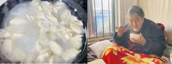 当热气腾腾的饺子端上桌,志愿者给老人盛上满满一碗,看着老人咬下第一口饺子时满脸幸福的笑容,大家心里也暖洋洋的。“这饺子真好吃,谢谢你们年年来给我包饺子,真贴心!”老人握着志愿者薛冰洁的手,激动地说道。