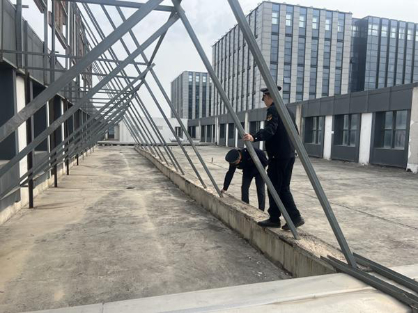 鲁网4月17日讯(记者 于胜涛 通讯员 史晓萌)日前,青岛市即墨区综合行政执法局执法人员在巡查中发现鑫诚恒业大厦两处楼顶字因锈蚀、断焊存在脱落风险。面对瞬时强风阻碍高空作业的紧急情况,执法人员迅速启动应急预案,联合物业采取临时加固、警戒隔离、智能监控三重防护网,24小时动态守护现场安全。待风力减弱后,专业施工队伍迅速进场完成拆除,及时化解了面积达110平方米的高空安全隐患。