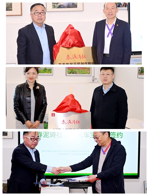 在签约环节,青岛春泥诗社文化传媒有限公司董事长张建波、总经理张文娟分别与天天车宝集团即墨机构负责人范欣果、澜集中国华东国际写生基地总经理姜晶签署合作协议,标志着诗社在文化产业化道路上迈出了坚实步伐。