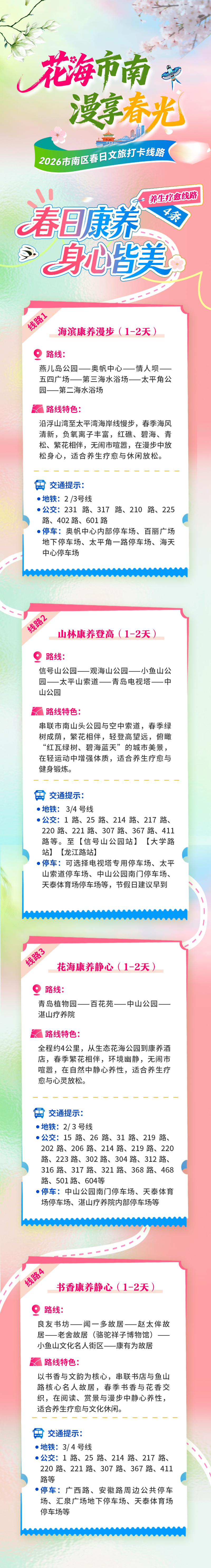 近日,青岛市市南区推出“花海市南 漫享春光”养生疗愈打卡线路!