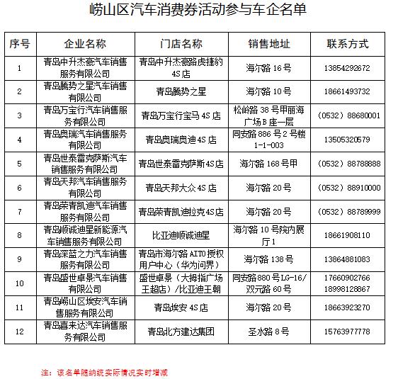 消费券适用于崂山区内指定零售、餐饮商户、汽车商户,具体商户名单详见汽车消费券活动页面的“票券适用门店”。(本网记者)