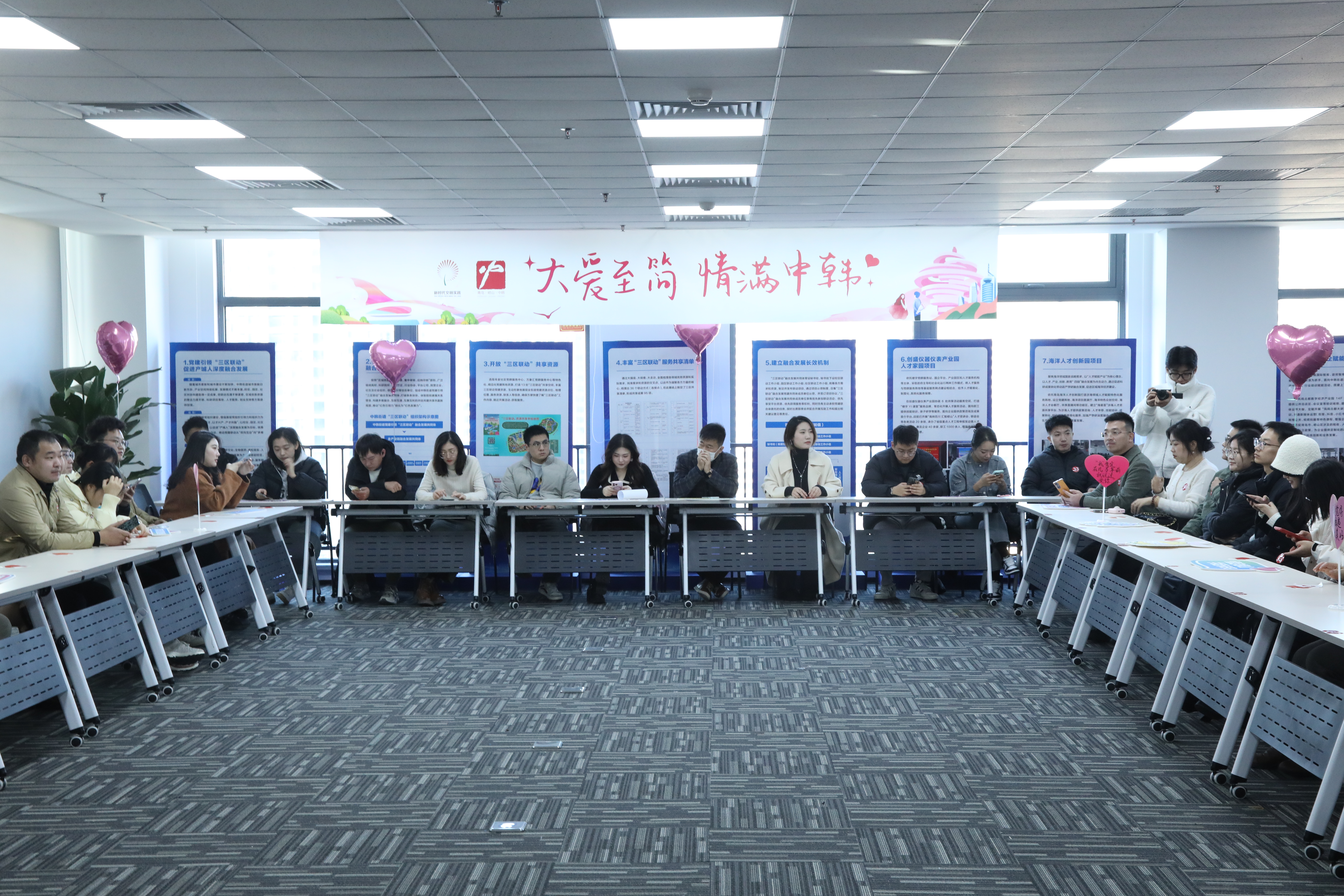 鲁网12月8日讯 12月7日下午,凤鸣北都数字经济产业园暖意融融。由青岛市崂山区中韩街道精心策划、乐为公益承办的“大爱至简、情满中韩”“三区”青年联谊活动在此温馨举办。此次活动旨在为街道校区、社区、园区的适龄单身青年搭建一个相互认识、交流情感的平台,引领新时代青年践行崇德向善、文明健康的生活方式,树立新型婚恋观。