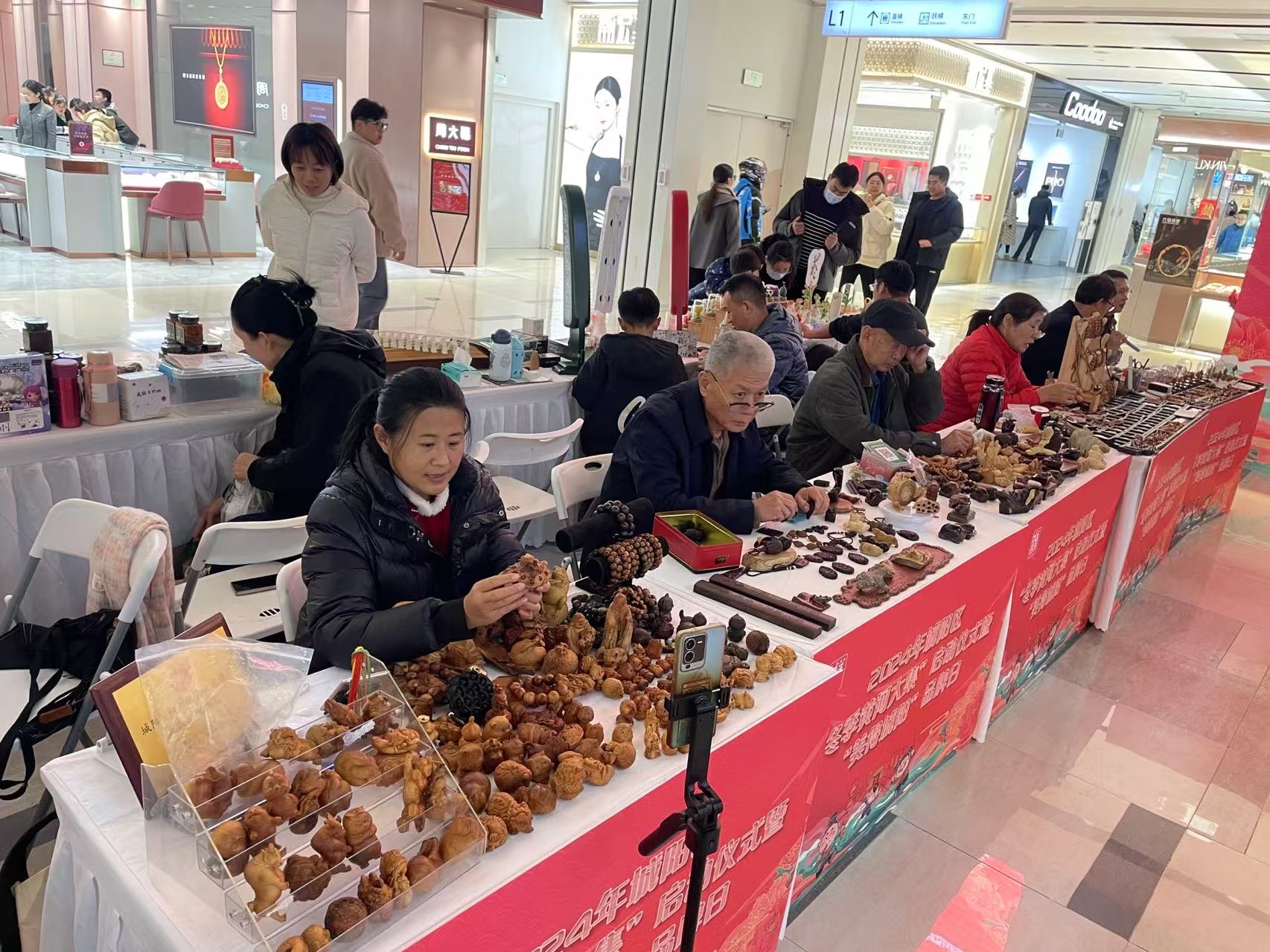 活动现场设置了多个展位,涵盖了130余种手造产品,既有肖氏核雕、邵氏木雕、刘氏崖柏雕刻等传统手造工艺品,也有“美得城阳”立体书、“美得城阳”文创木雕灯等极具城阳特色的手造精品。青岛农业大学的学生们带来了精心制作的创意手造作品,佳美洋、三利莫丽斯、合睿吉蘑等区食品协会会员单位带来了各具特色的食品参展,吸引众多市民游客前来选购。