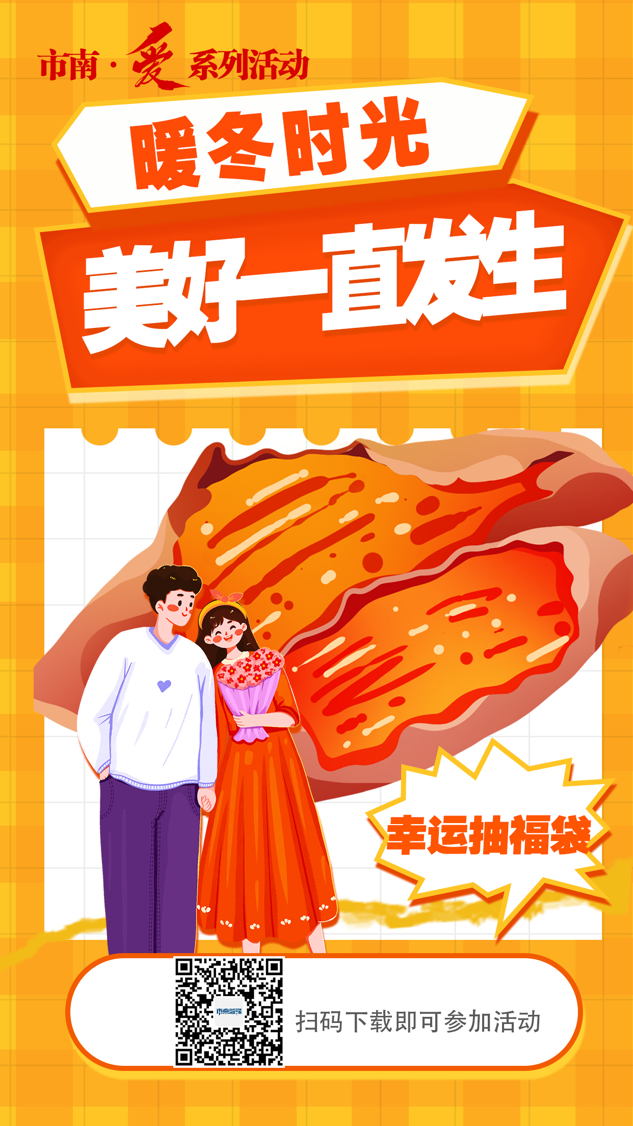2.点击进入市南·爱系列活动【相信·爱】板块,在活动页面参与“暖冬时光,美好一直发生”抽福袋赢蜜薯活动。