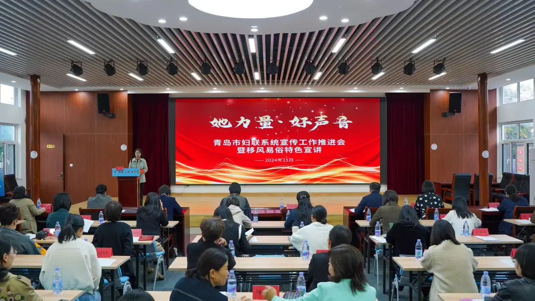 聚焦弘扬新风,建好家门口“精神园”。承办“她力量·好声音”青岛市妇联系统宣传工作推进会暨移风易俗特色宣讲活动,开展“文明新风进万家”移风易俗主题宣讲活动30余场次,引领城乡家庭和妇女群众弘扬中华优秀传统文化。