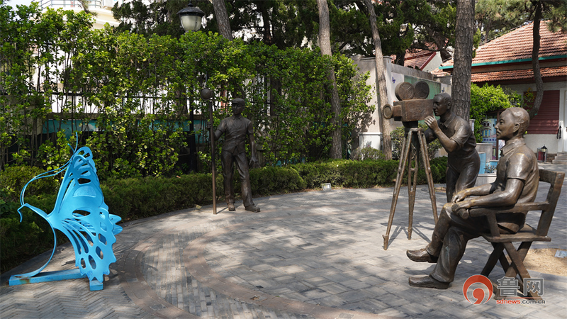 如今蝴蝶楼仍留有民国风情与昔日电影元素,影视画报、电影文本,以及洪深、张石川、胡蝶的故事都在此可读可品;室外苍松亭亭,循着“电影拍摄雕塑”的视角看青岛,展眼尽是“红瓦绿树、碧海蓝天”的经典画卷,便知青岛作为电影拍摄圣地的原因。